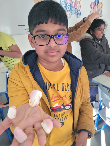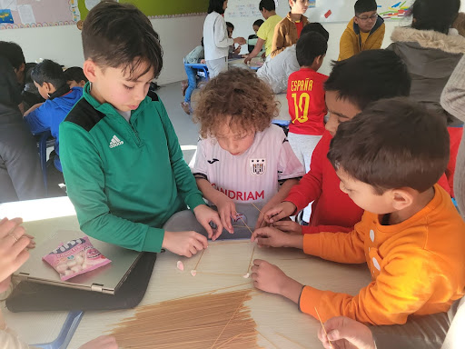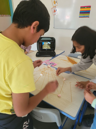 After discovering the Mayan civilization, students couldn’t wait to share about it! So, Class 5 paired up with the youngest primary students and build Maya pyramids out of only two materials; marshmallows and spaghetti.