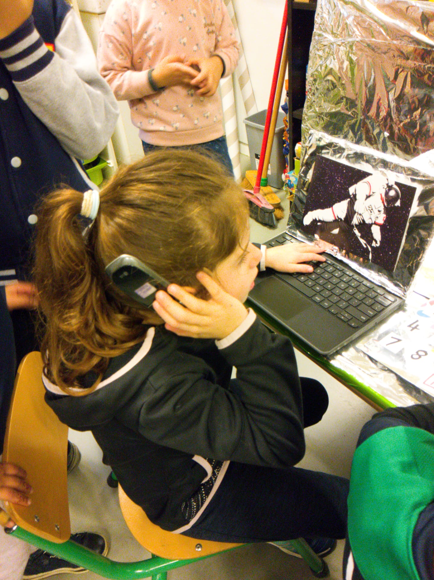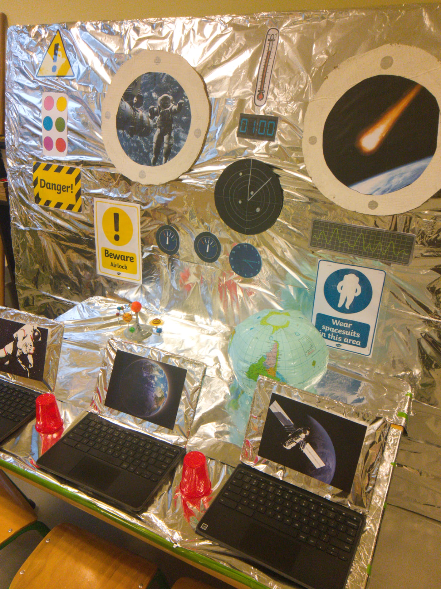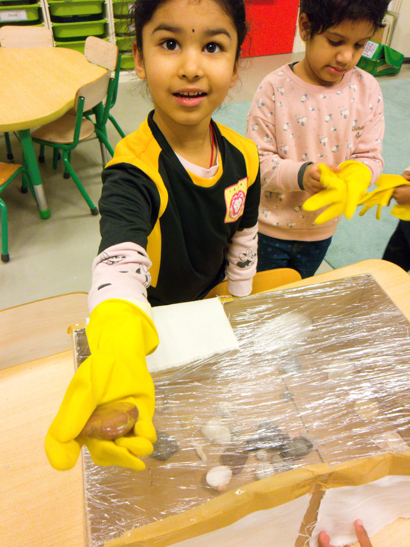 The children this morning found in the corridor a mysterious trail of space debris, including a map of the cosmos, that led towards the classroom. They discovered, once bursting into the room, that a space ship had made an emergency landing there! On board were 3 aliens who needed help to return to their planet. The children had a mission to fix the space ship and help the aliens. They set about brainstorming possible destinations and made lists of essential items to pack for the journey. These included a comb, picnic basket, and space goggles! The children also examined ‘moon rocks’ whilst wearing special space gloves! It was a fun day and a great start to our Blast off! IEYC Topic.