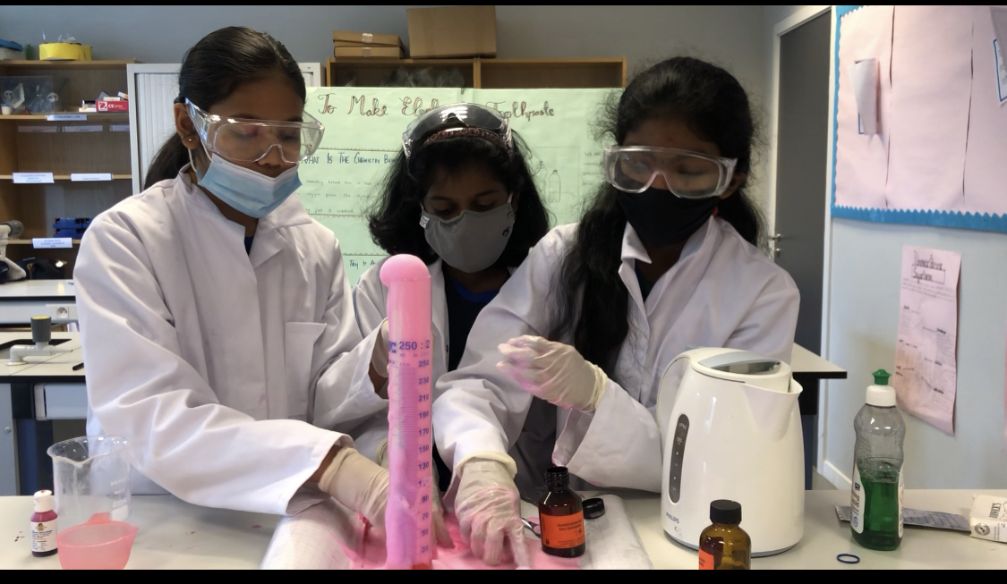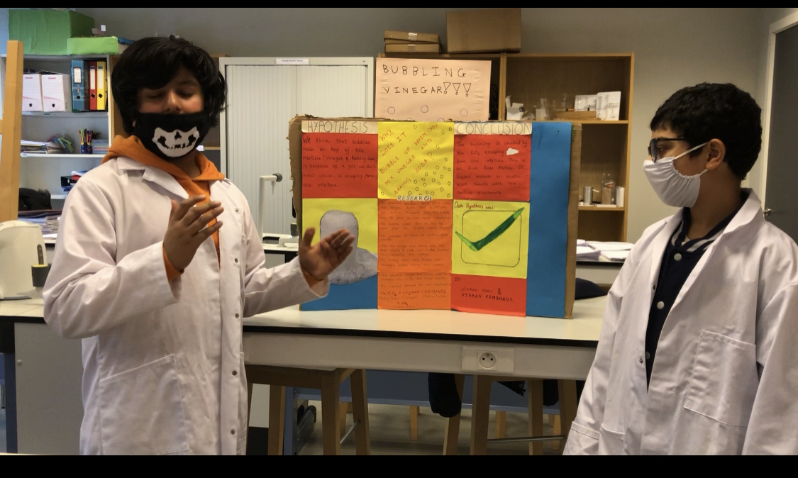 Students have made a great effort to come up with interesting and exciting experiments. Their ideas were discussed and finalised together with the teacher. It was important that the students were able to explain and understand from a Scientific perspective what their experiment was about and how the results could be explained. This was often the hardest part for the children. We then spent a whole week on preparing and practicing the experiments before we started filming. Shooting the experiments was also not an easy task and Ms. Grace has done a great job “directing” the videos. After the filming was done students had to edit their video material and come up with their own Science fair Video! Please check out the Google Classroom to watch the videos.