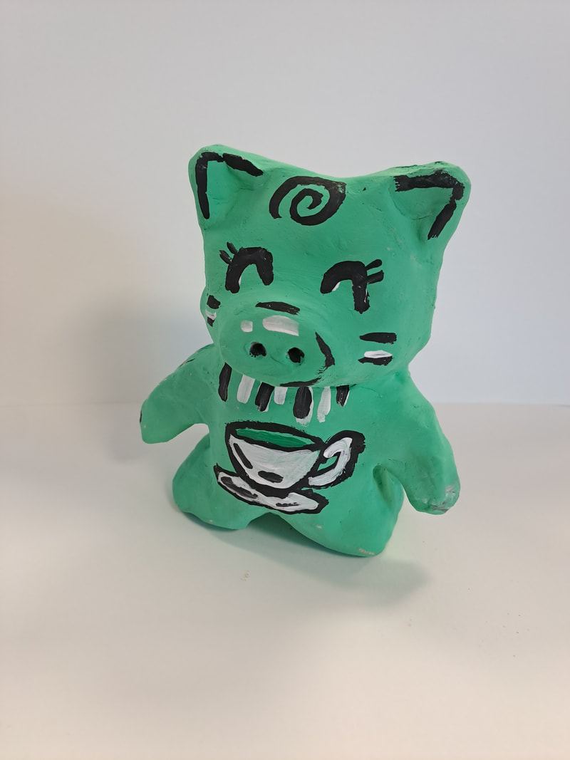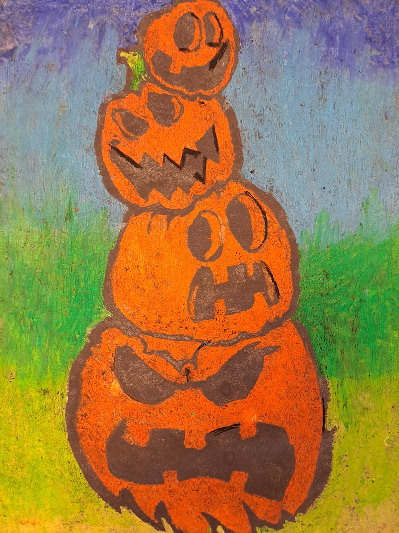 Class 7: Ragas Huub: Impressionism, Wayne White: One-point perspective words, Halloween: Crayon Batic, Tim Burton: Self-portrait