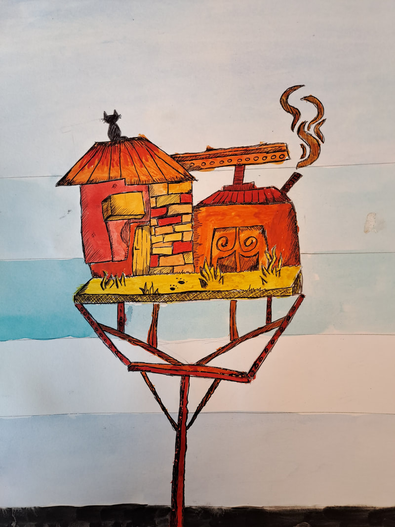 Class 5: Dauthuille Stéphane: watercolour Stilt houses, Landscape art: Understanding one point-point perspective