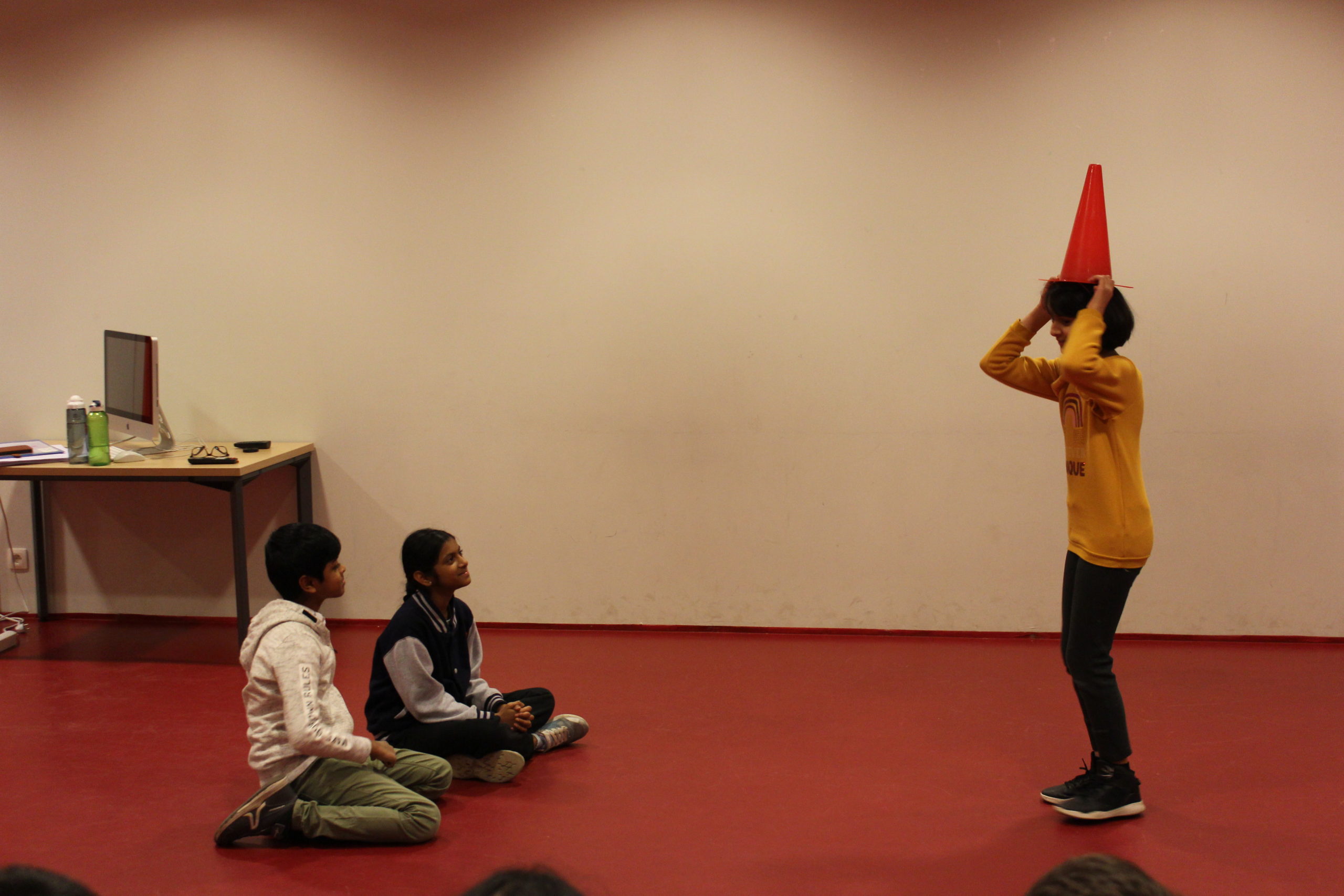 With many classes not possible earlier last year due to Covid, the students of class 4 and 5 returned to school last term with renewed enthusiasm to express themselves through drama. Classes have focused on group improvisation, interpretation of poetry and drama games to encourage teamwork and concentration. This enthusiasm has continued into January and in the first exercise after the December break, the students were given the challenge of creating a short scenario around a given object; in this case a humble cone which could be used as anything… except as a cone. With imaginations stimulated the students set to work…