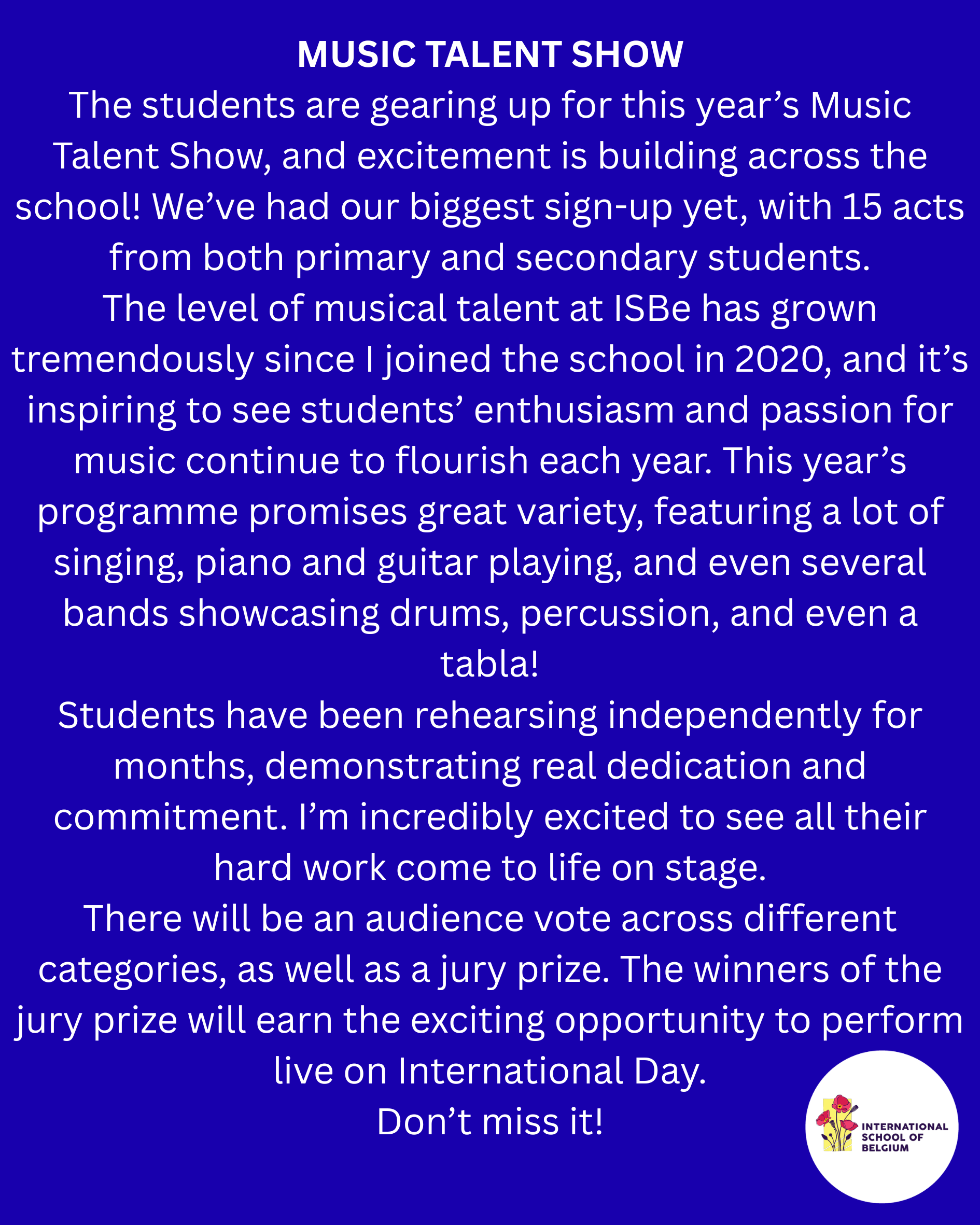 To our valued parents and ISBe community members,