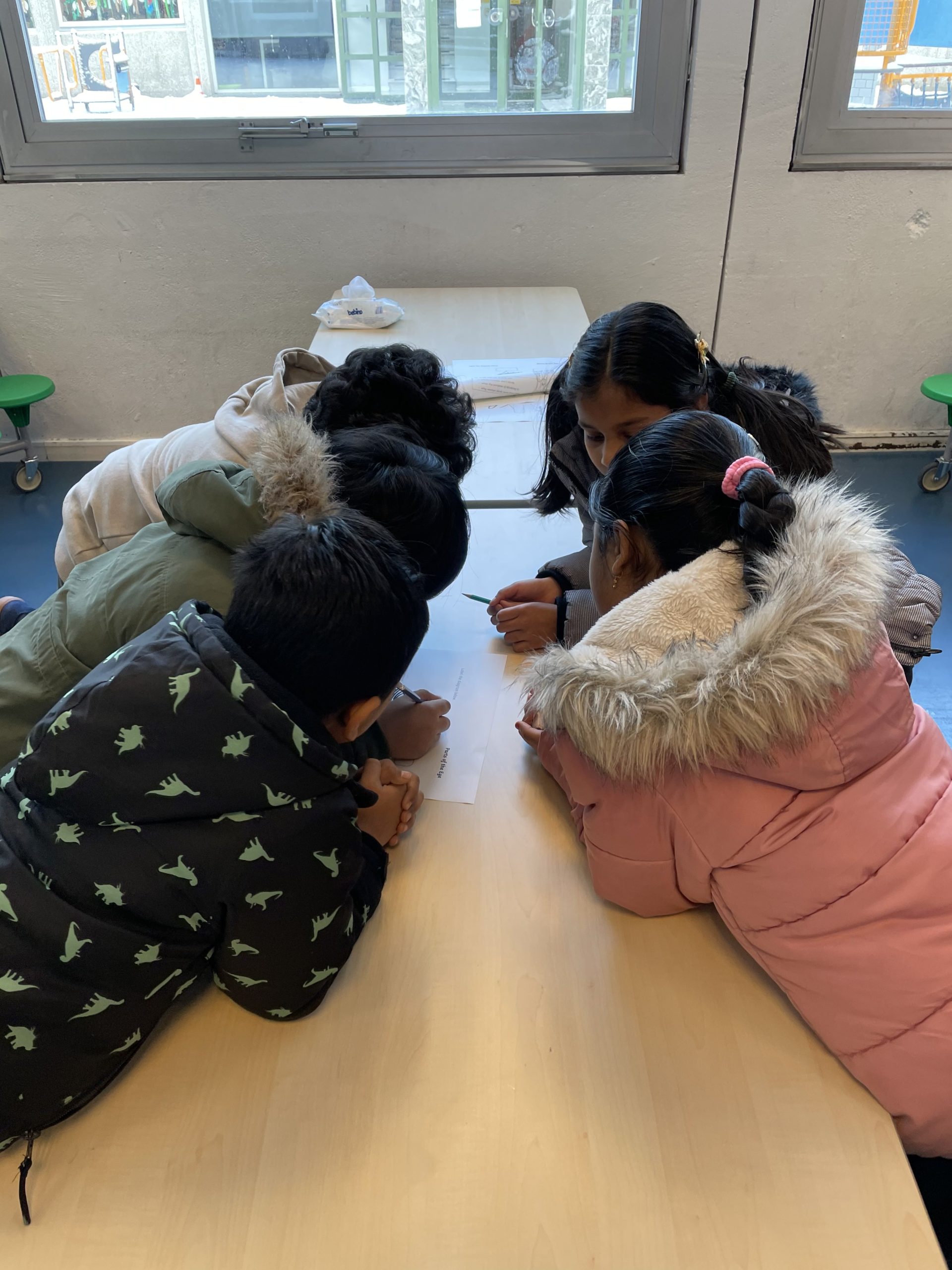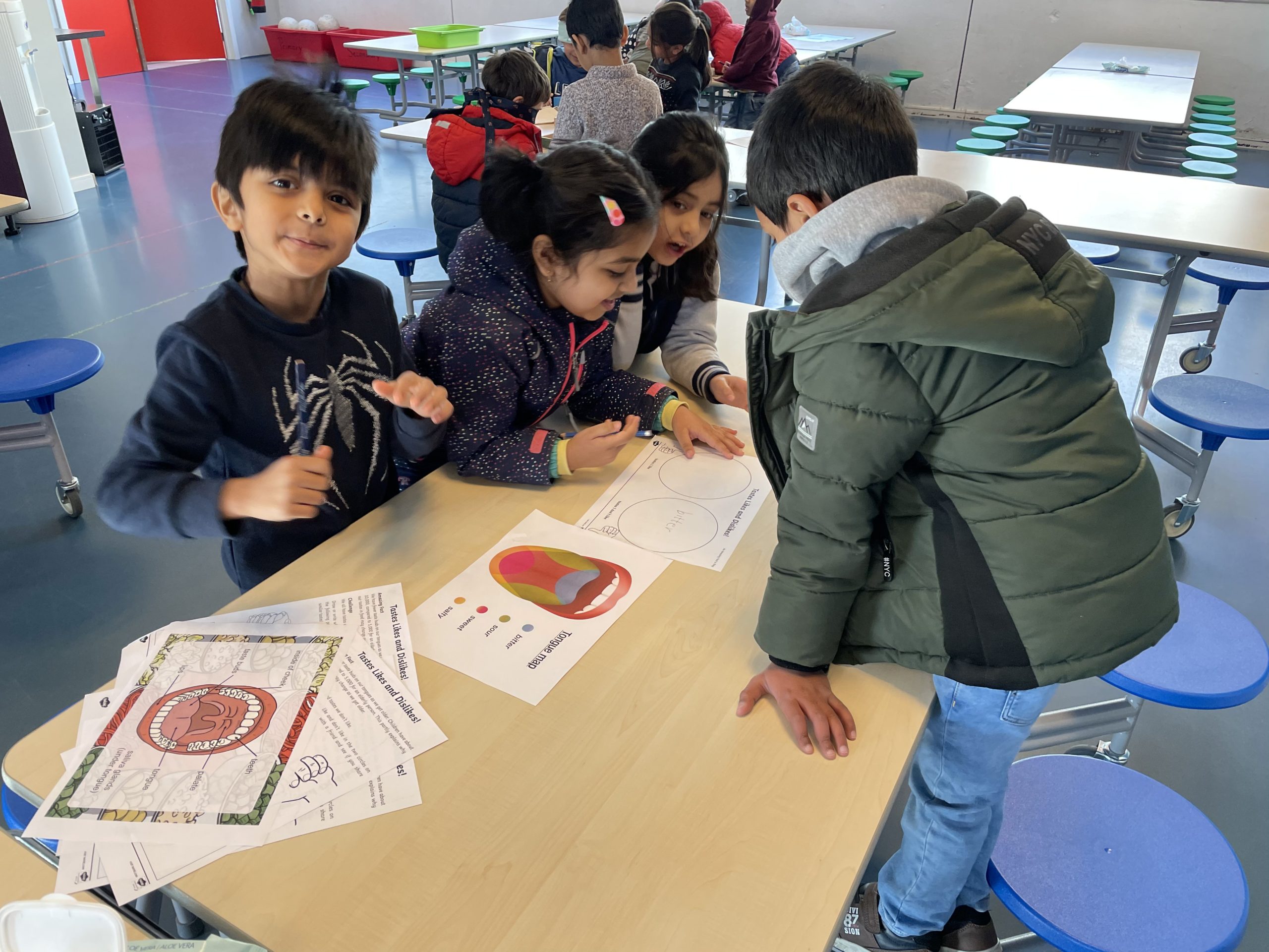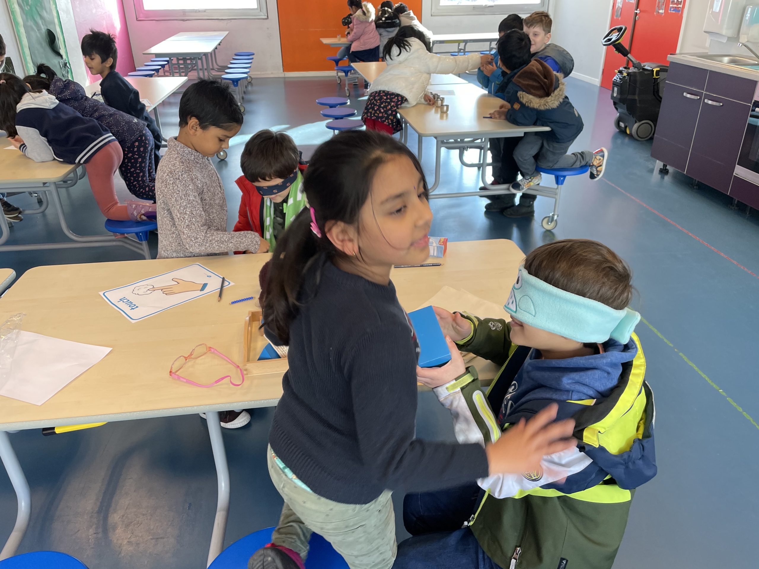 We also have a guest visiting us in our classroom during this unit. Can you guess who it is? Uhmm a biology teacher? No! A doctor? No No! Maybe a skeleton? Yess!! You guessed it right. We have named him Mr. Bones! Do you know how many bones he has? 206! How amazing is that?! He stands in front of our classroom so we can see and understand the structure of our bodies. To understand how our senses help us experience the world, we did a sensory field walk on our playground during which the children had to look or think of something which they could see, taste, hear, feel and smell. Now you might be thinking “ seeing, listening, feeling/ touching or smelling something on the playground can be done but – oh my goodness, what can the students taste on the playground?” Well luckily it was drizzling during our investigatory walk and so the children realised they could taste the raindrops. They are pretty clever, aren’t they?!