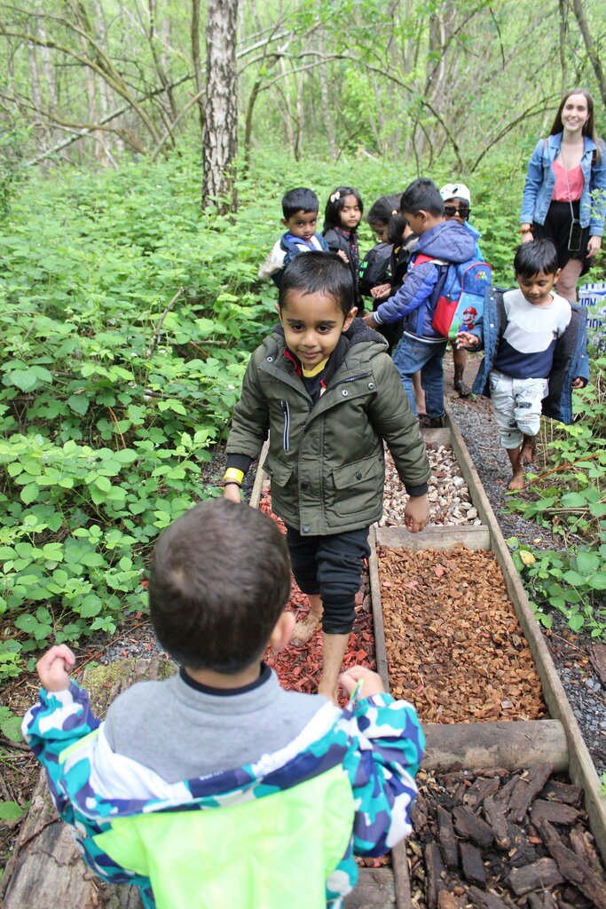 The plants we set out are doing very well. The classes are taking turns to water them. This week we were able to pick some strawberries. The courgette and pumpkin plants are enormous already and the herbs are very aromatic around the playground.