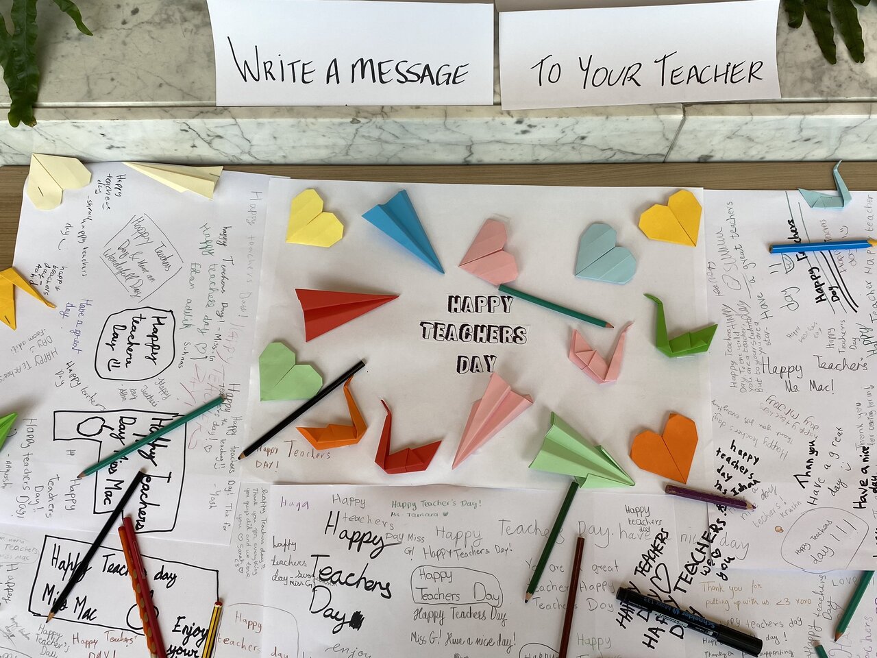 We also celebrated International teachers day in school with a special teachers lunch. The students wrote messages to their teachers on a poster that we put up in the theatre. We really appreciated the kind words, cards and gifts from the students. Thank you.