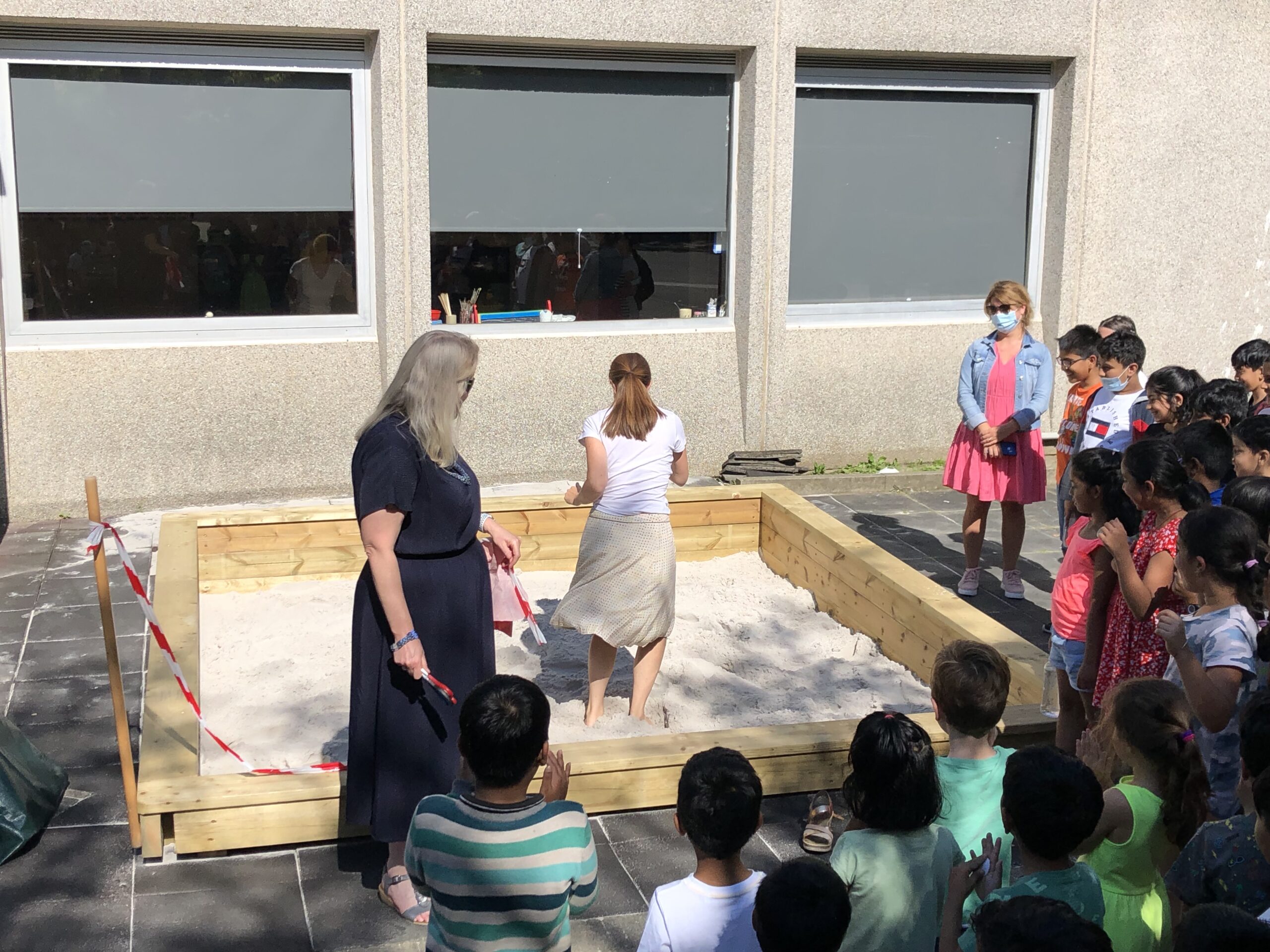 On wednesday there was a big event when we opened the school sandpit. The students enjoyed watching its construction and tried to sneak in there from time to time before it was ready. We had to be vigilant! However, Mrs Harwood and I cut the ribbon and declared it ‘officially open’ and now all of the primary classes have a rota to go in there. It has been a long awaited facility and the students are very excited to use it.