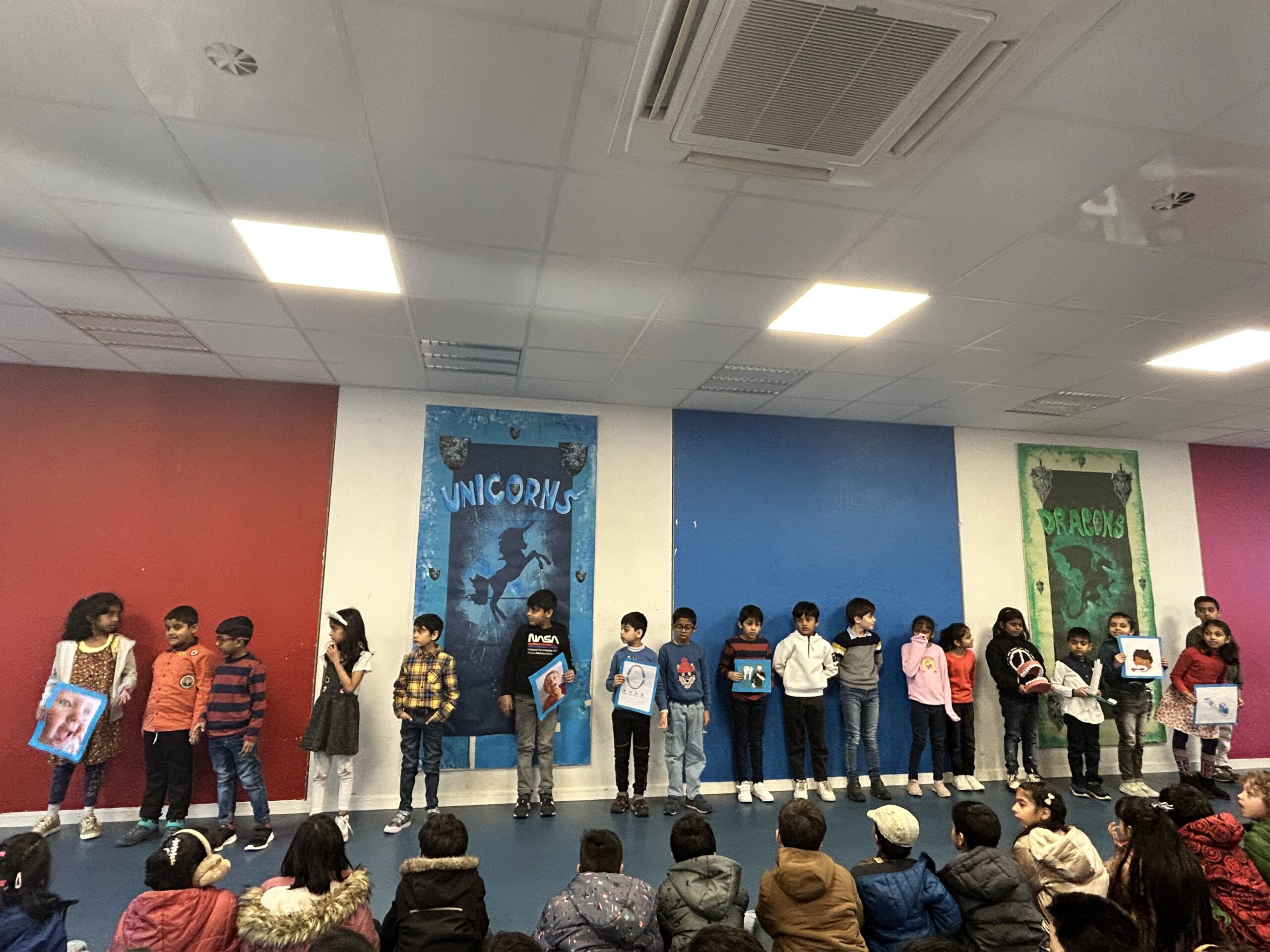 For today’s assembly Class 2 were also sharing the learning from their unit ‘Superhumans’ with us.