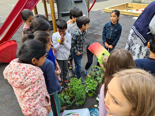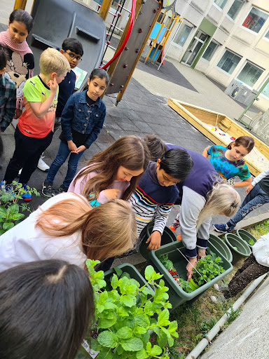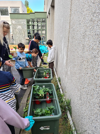 Last week the students also planted out some pots with strawberries, mint and other interesting food related plants. These were all donated by the Maudsley family in remembrance of their grandmother Lynn Martin who used to work at the school. Which was very kind and greatly appreciated. The plants are already growing well. The students are taking turns to water them.
