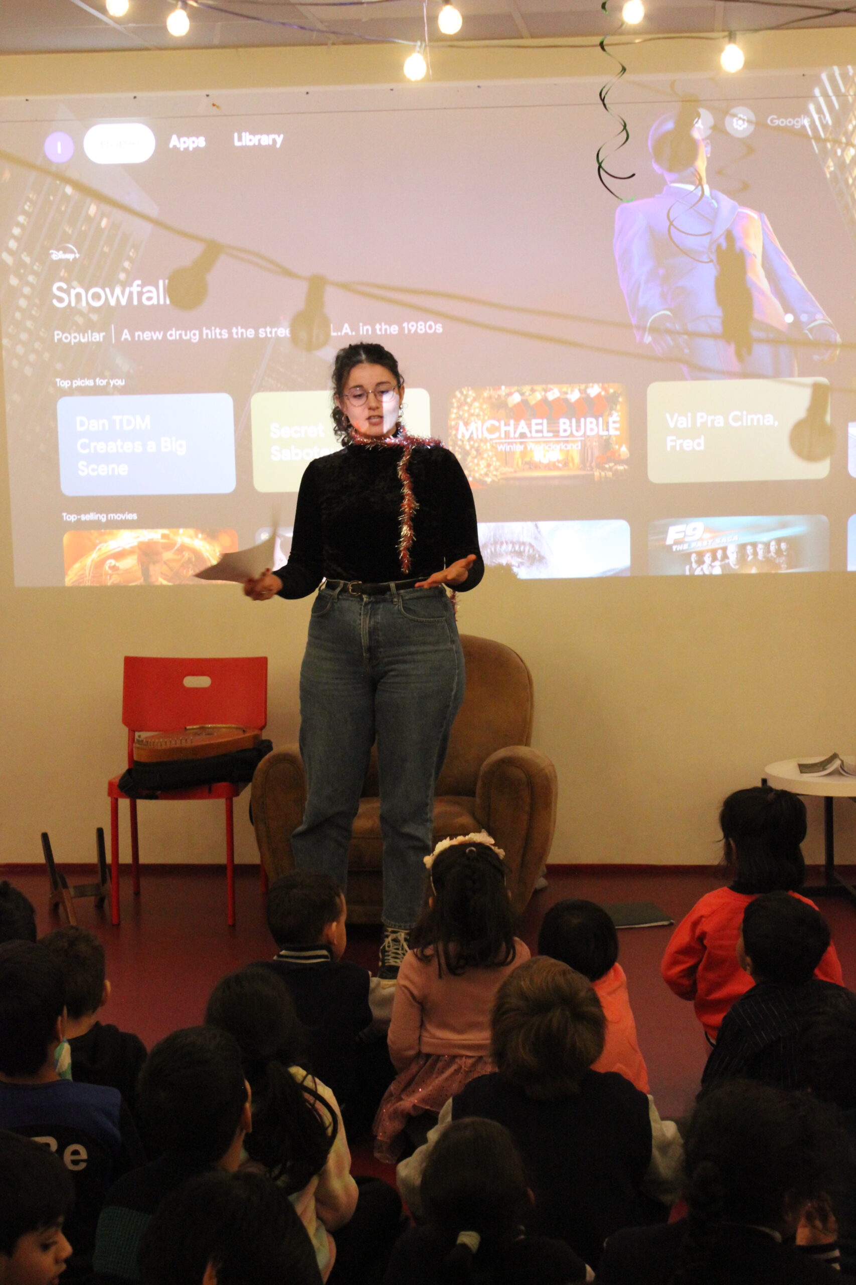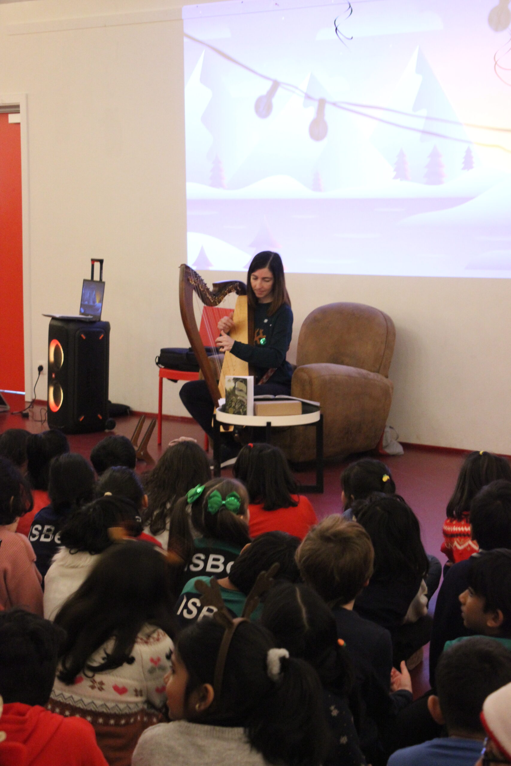 On Thursday we had our end of term assembly. Ms Nichols, who has been on maternity leave, returned and played her harp for us and told us some wonderful winter tales and Ms Victoria, who has been covering the role, sang some lovely songs. The theatre was decorated with Christmas lights and it all felt quite magical. We wish Ms Victoria all the best and thank her for her dedication and hard work while Ms Nichols has been away.