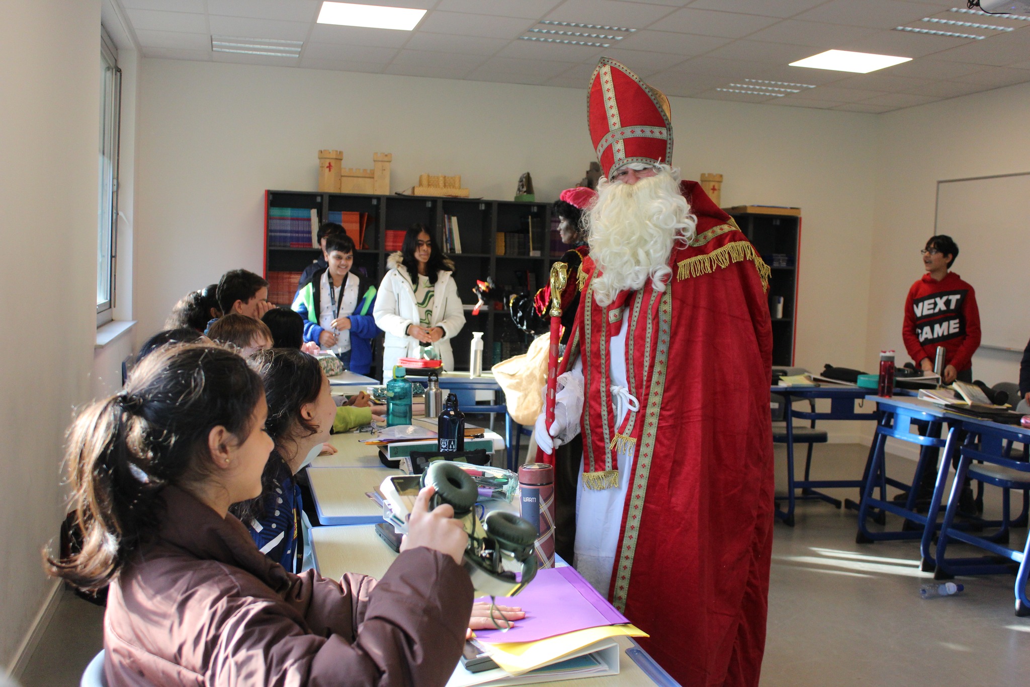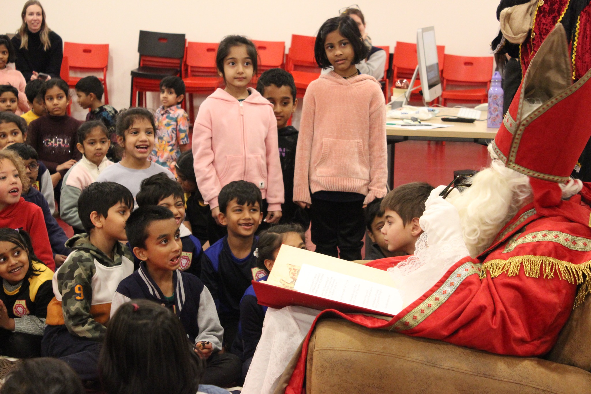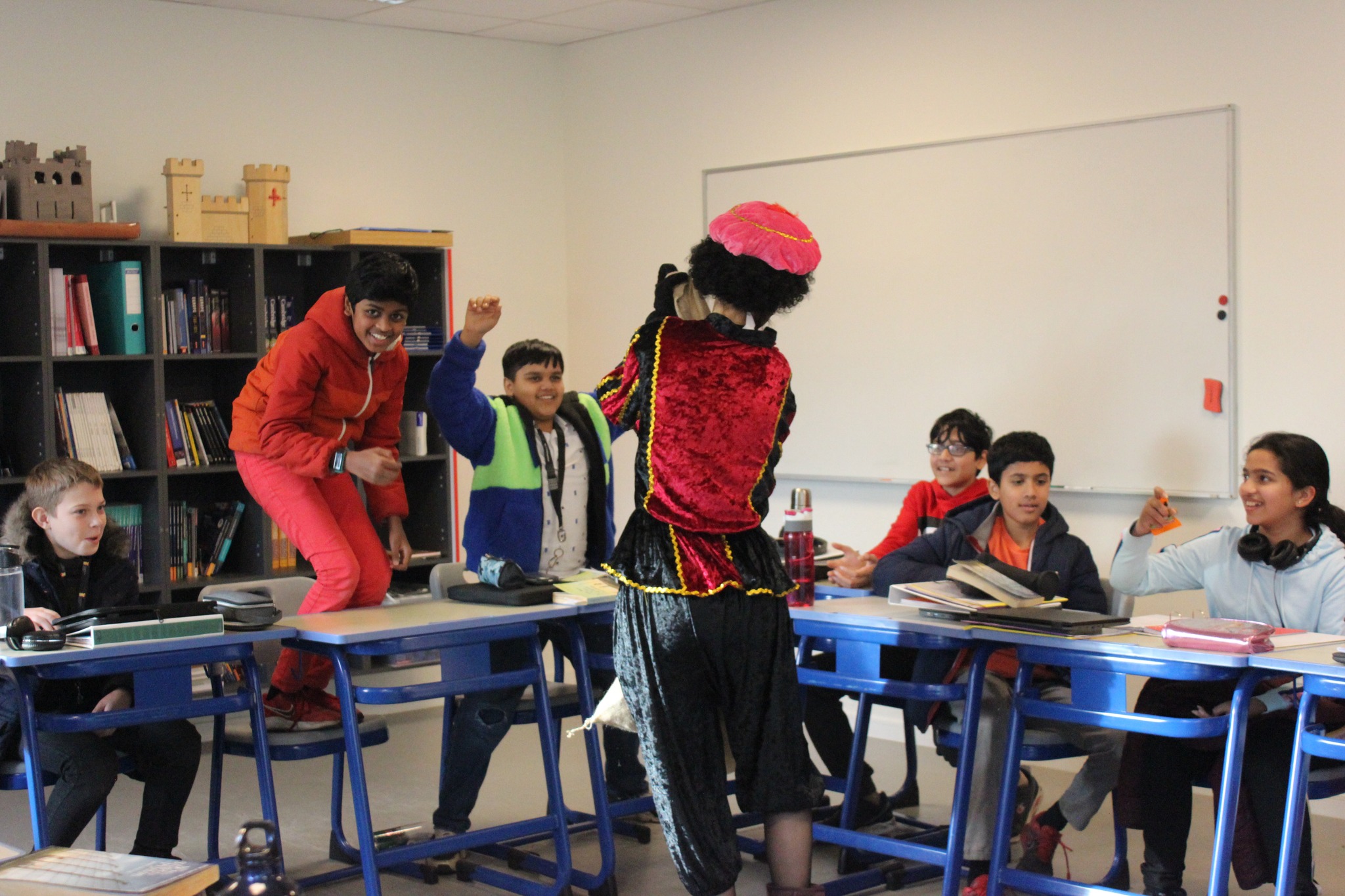 On the 6th December we had a very exciting visit from Sinterklaas and Zwarte Pieter. Earlier in the day several of the classrooms had been messed up (that naughty Piet!) and the children who had left out shoes had received goodies in them. In the afternoon we all got together in the theatre to sing and perform for Sinterklaas and he read from his book about who had been good and who needed to reform. Zwarte Piet was able to distribute sweets from his sack and offered to take away any rowdy children in the empty one.