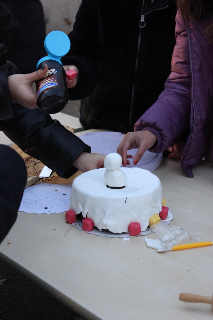 On the 13th December it was the house cake decorating competition. A team of students and staff from each house had 20 mins to decorate a cake. We held the competition outside so everyone could see and it was a bit chilly. All three houses did a fantastic job and the cakes looked marvellous. It was just a shame we couldn’t all have a taste as well!