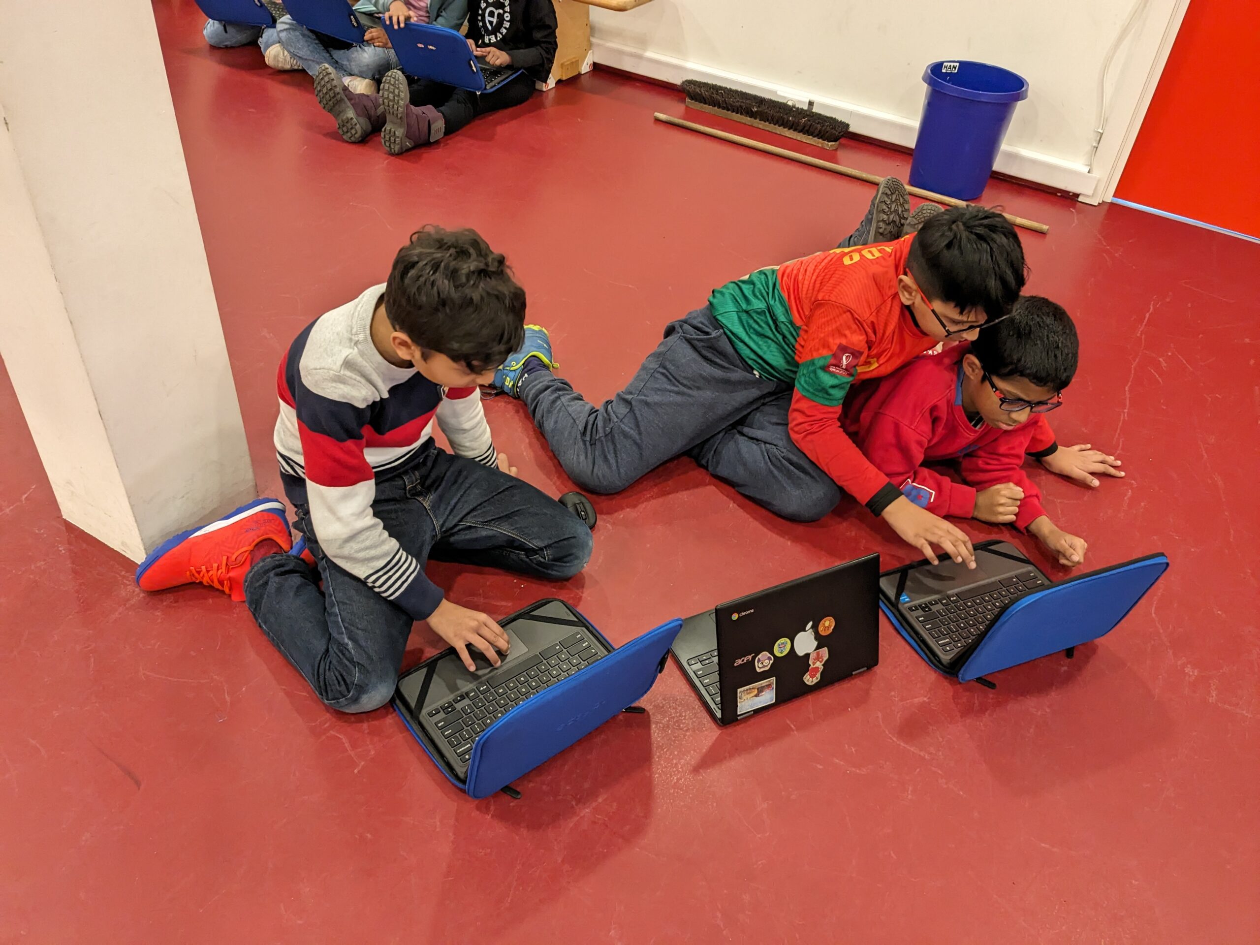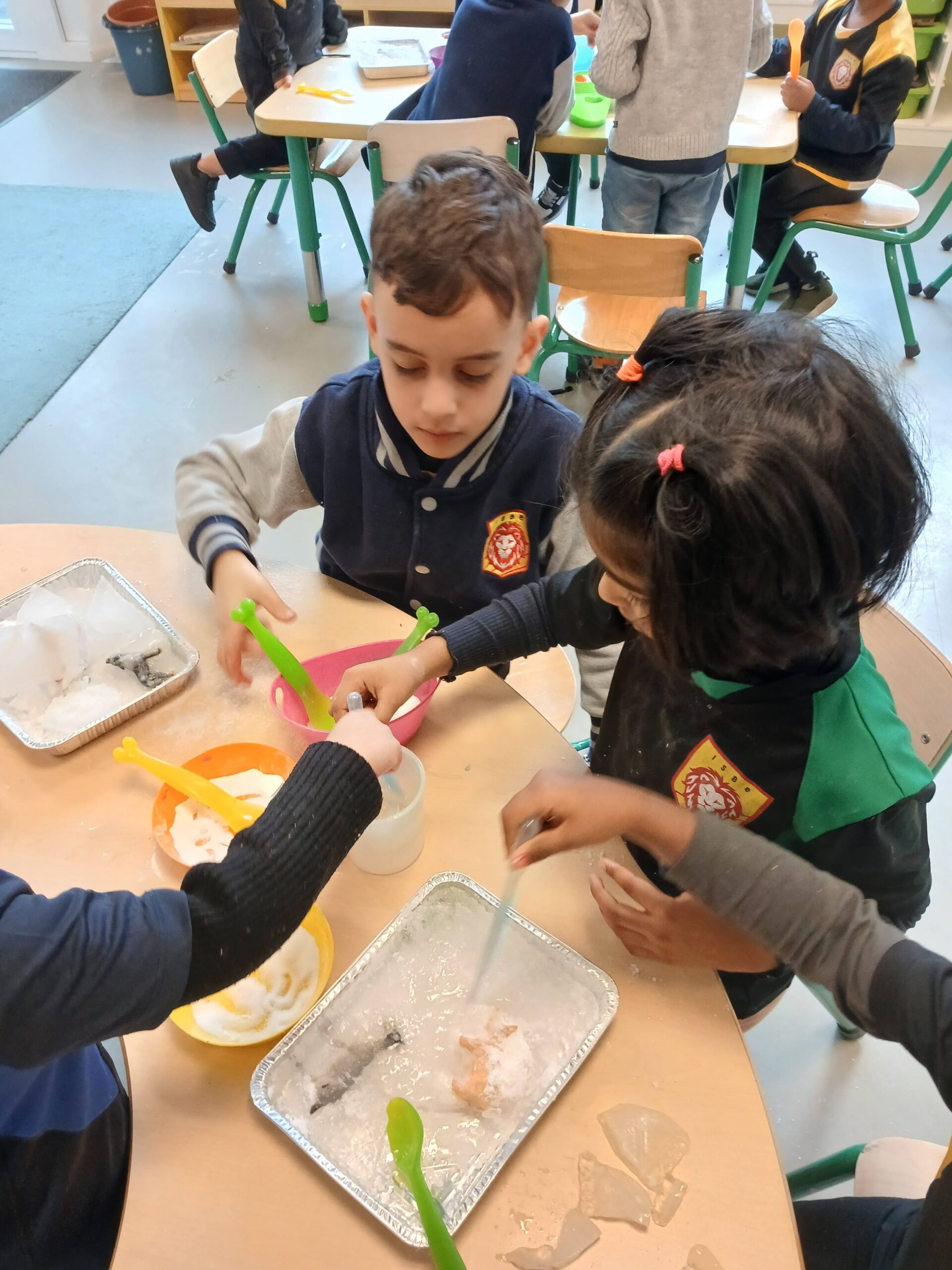 Some class 5 students were able to go to Thomas Moore University in Mechelen for an Antarctica day where they used additional technology including VR headsets and other specialist equipment to explore global warming and its effects on Antarctica and its wildlife.