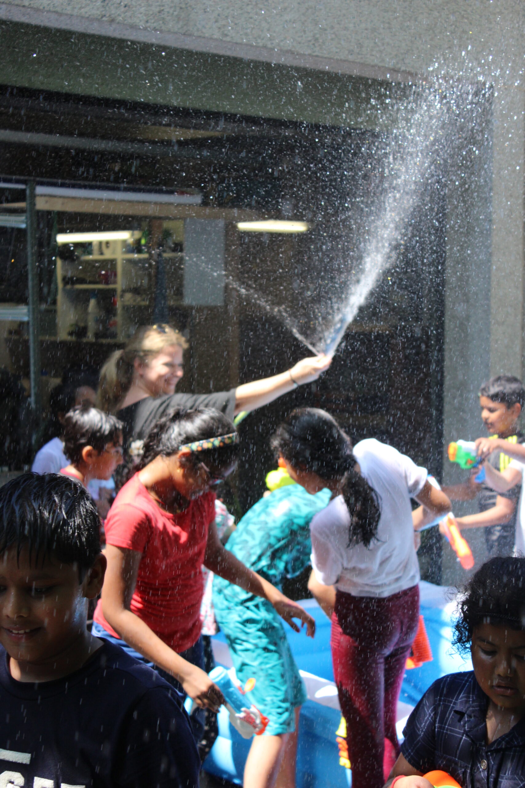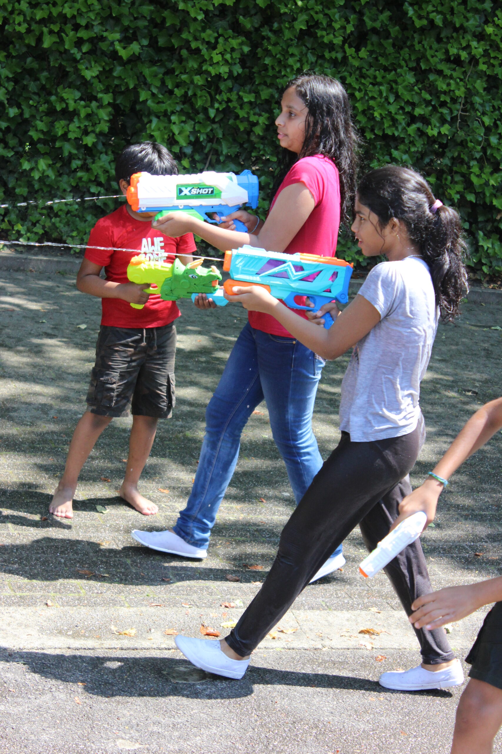 This week we had the Primary water party. This event has been on hold because of the terrible weather but this time the sun broke through and the students were able to have a lot of fun squirting each other with water pistols and dousing their teachers.