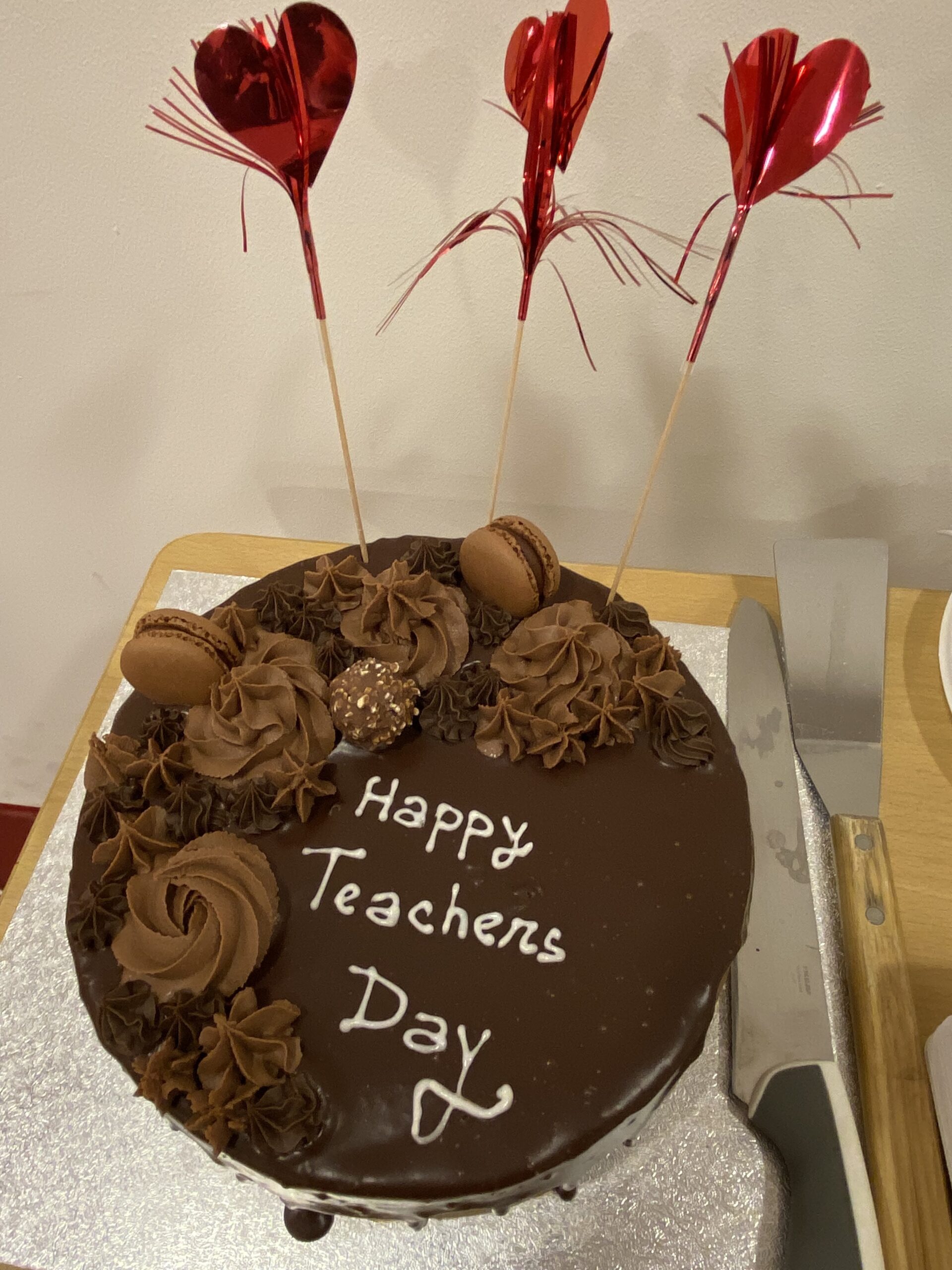 This week we celebrated International Teachers Day and students got to show their appreciation and say thanks to our wonderful teaching staff. Students wrote their words of thanks on a giant origami card and also recorded video messages that were shared with staff. A special lunch was provided and a fantastic chocolate cake which was all set up and served by some of our enthusiastic student council reps in class 5 and middle school.