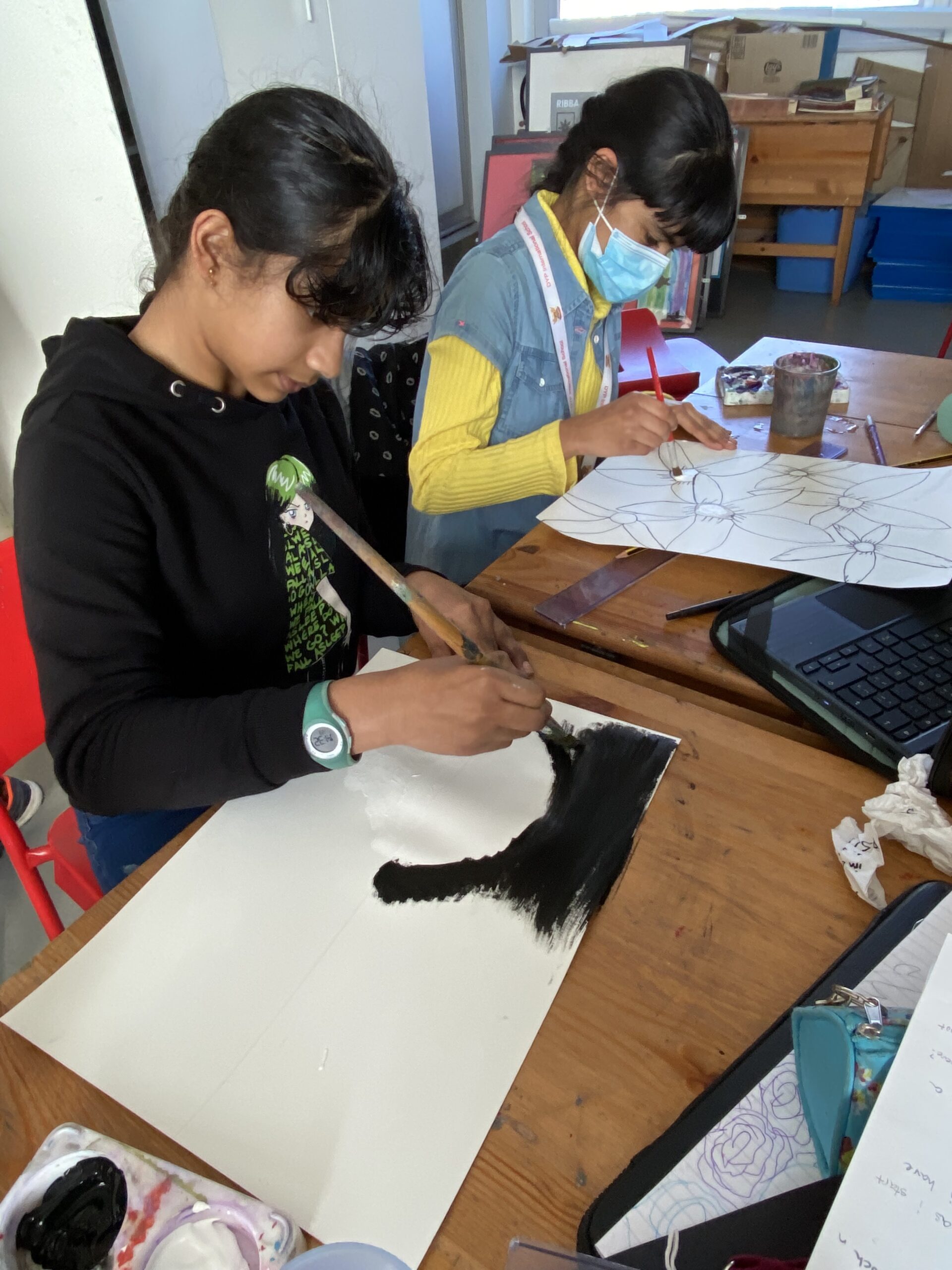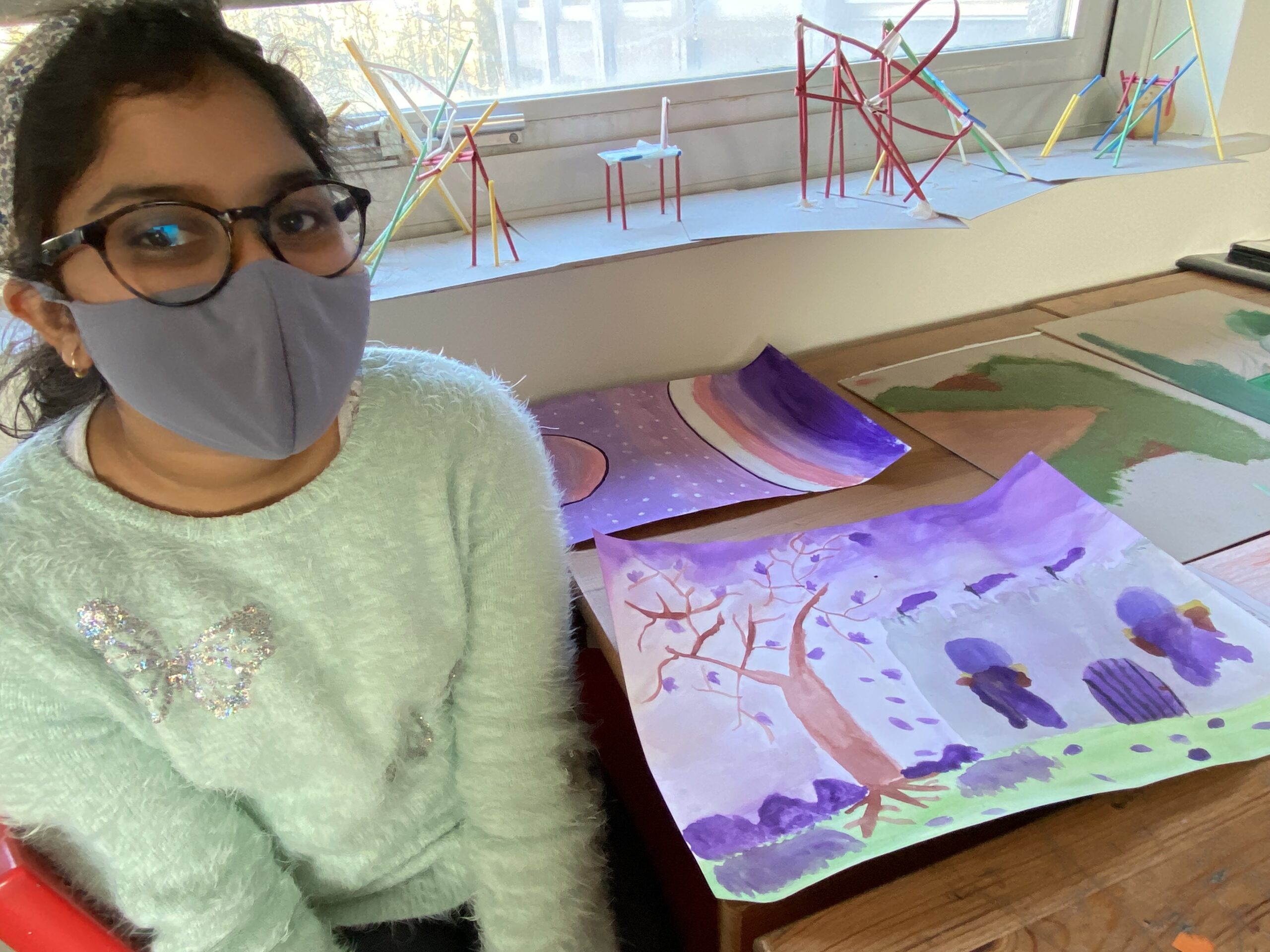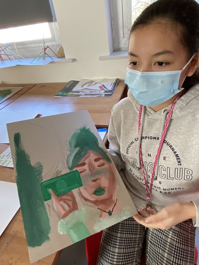 Students are exploring how feeling and emotions are expressed and represented in artworks using the medium of painting. Here are some pictures in various stages of development: