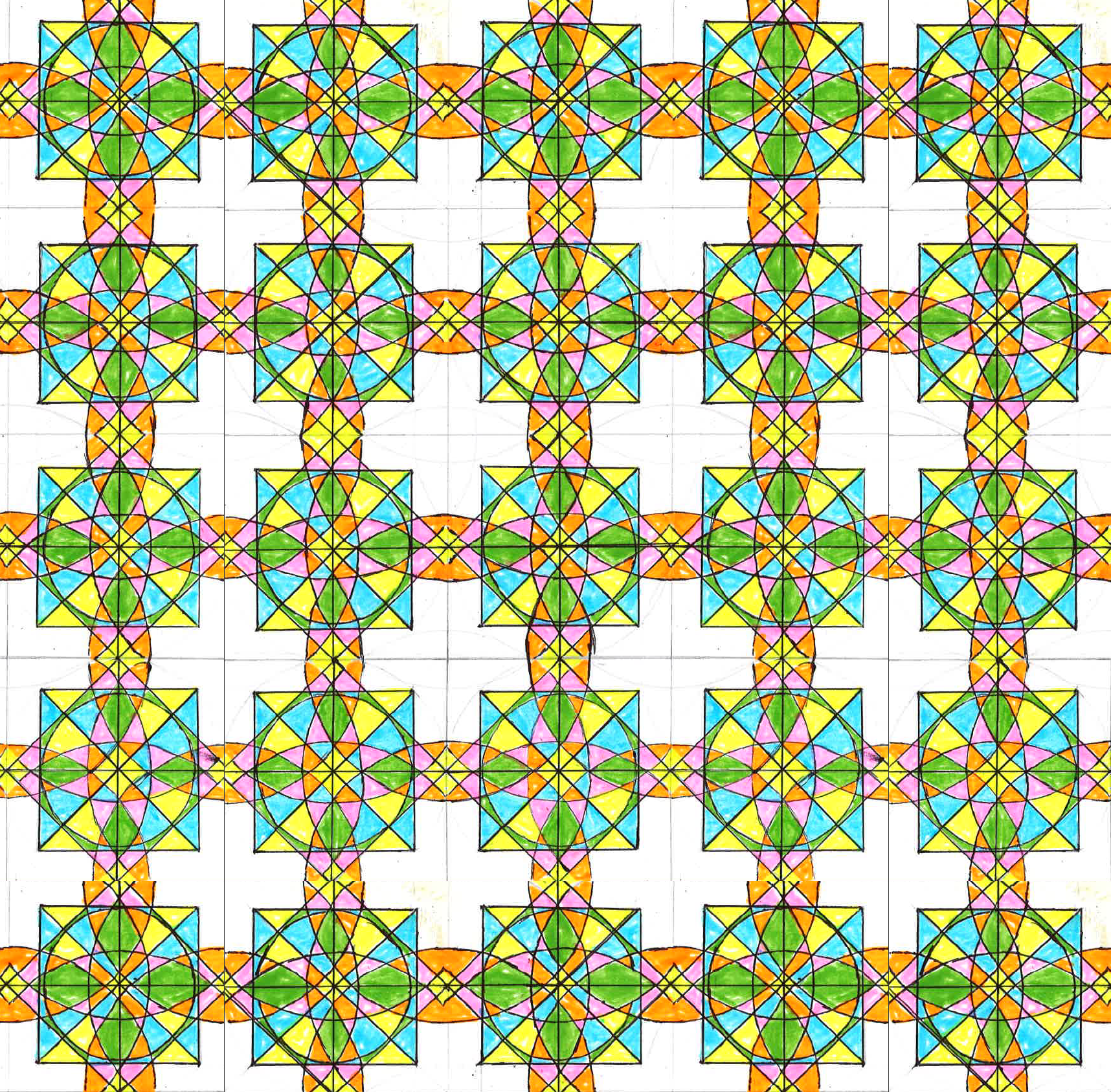 The outstanding richness of Islamic art lies in the complex use of geometrical patterns, with ingenious designs covering the walls, ceilings, floors and windows of buildings in the Islamic world. This term, students of Classes 6 to 8, in applying their knowledge of basic construction they have acquired in mathematics lessons, have developed their own distinctive styles of geometric designs inspired by Islamic art, using only a ruler, a compass and a sharpened pencil.