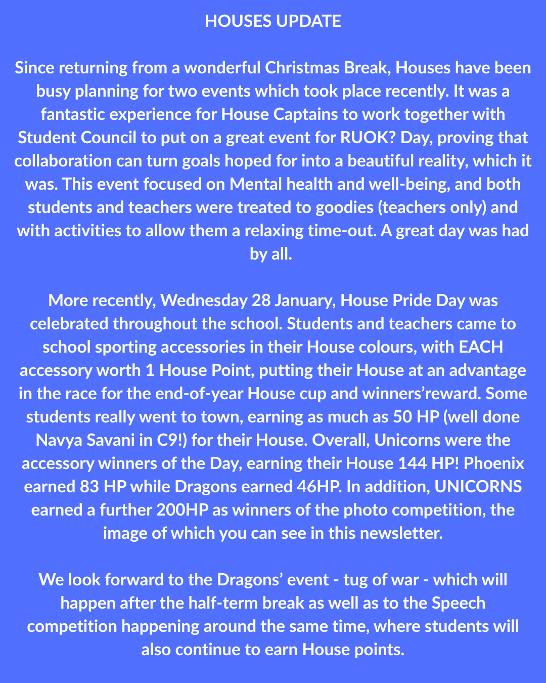 We thank students, staff, and families for their continued support and engagement during this busy and productive period.