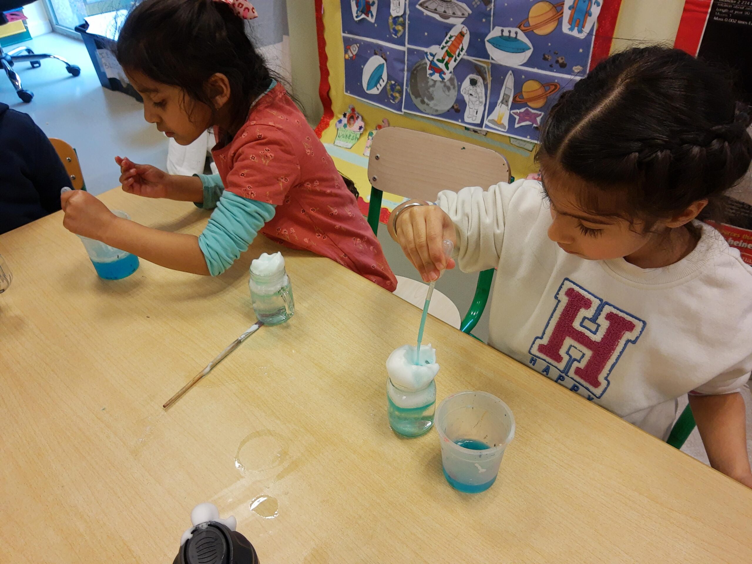 This week has been our Maths and Science week. All of our students from EYR to Class 5 have been taking part in some great activities all week. The science theme has been Growth. On Monday Secondary students taught classes 3 , 4 and 5 some interesting experiments in the Secondary science labs.